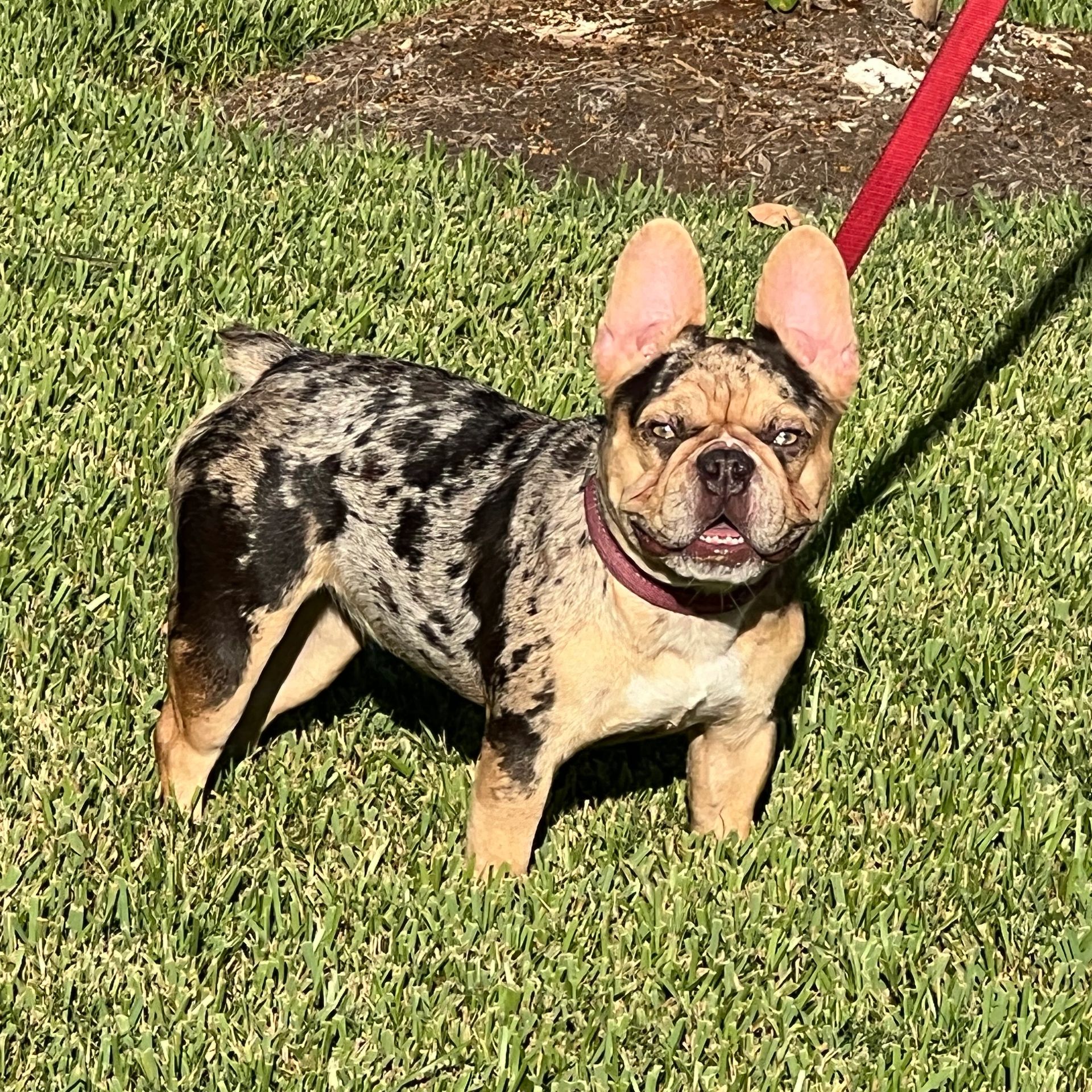 HUGO BOSS is a 3 year old Blue Merle neutered AKC registered French Bulldog looking for a fun, loving home where he can be showered in love and attention. Hugo has a great temperment, is crate trained and knows many other commands. $500 Administrative adoption fee applies.